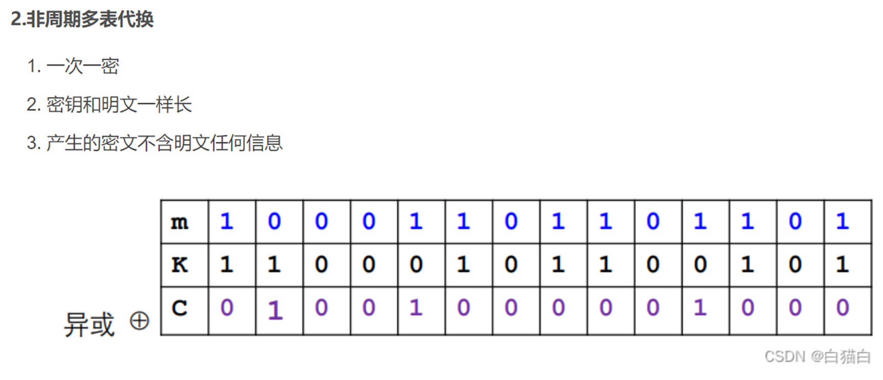 如果 d = ∞ d=\infty d=∞,则代换序列是非周期无限序列,每个明文都采用不同的代换表进行加密,这其实就是"一次一密"。通常实际应用中采用周期代换密码,也就是使用有限个代换表。