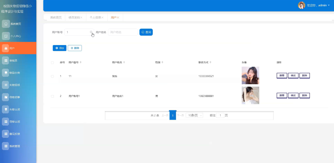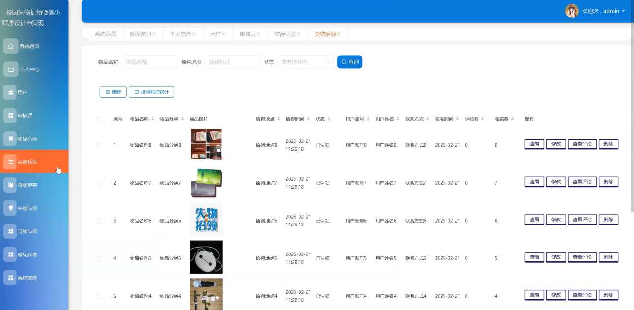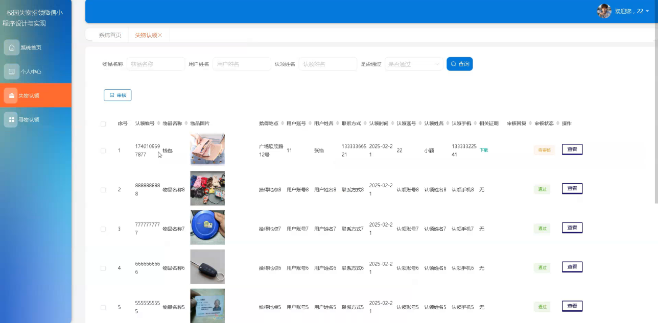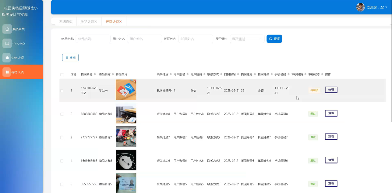 - 审核操作:审核失物认领申请、寻物认领申请的真实性与合规性;