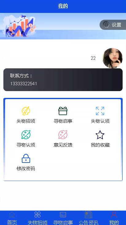 - 信息查看:查看失物招领信息、寻物启示、公告资讯;