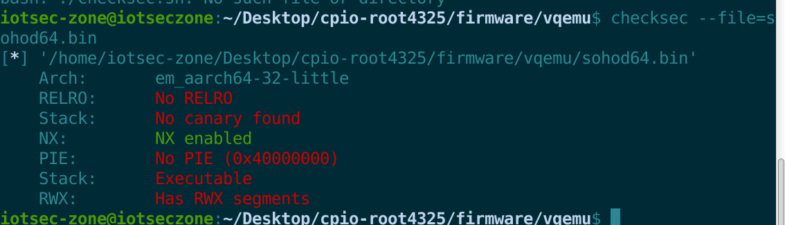 每次循环都在param_2 + param_count*8 和 +4的位置写数据,然后param_count太大时就会造成溢出,覆盖返回地址,可能是DOS或者RCE。这里就需要看一下这个文件是否开启了NX保护。