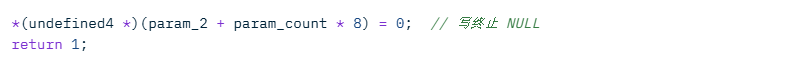 *(param_2 + param_count * 8 + 4) = 0; // 写 NULL