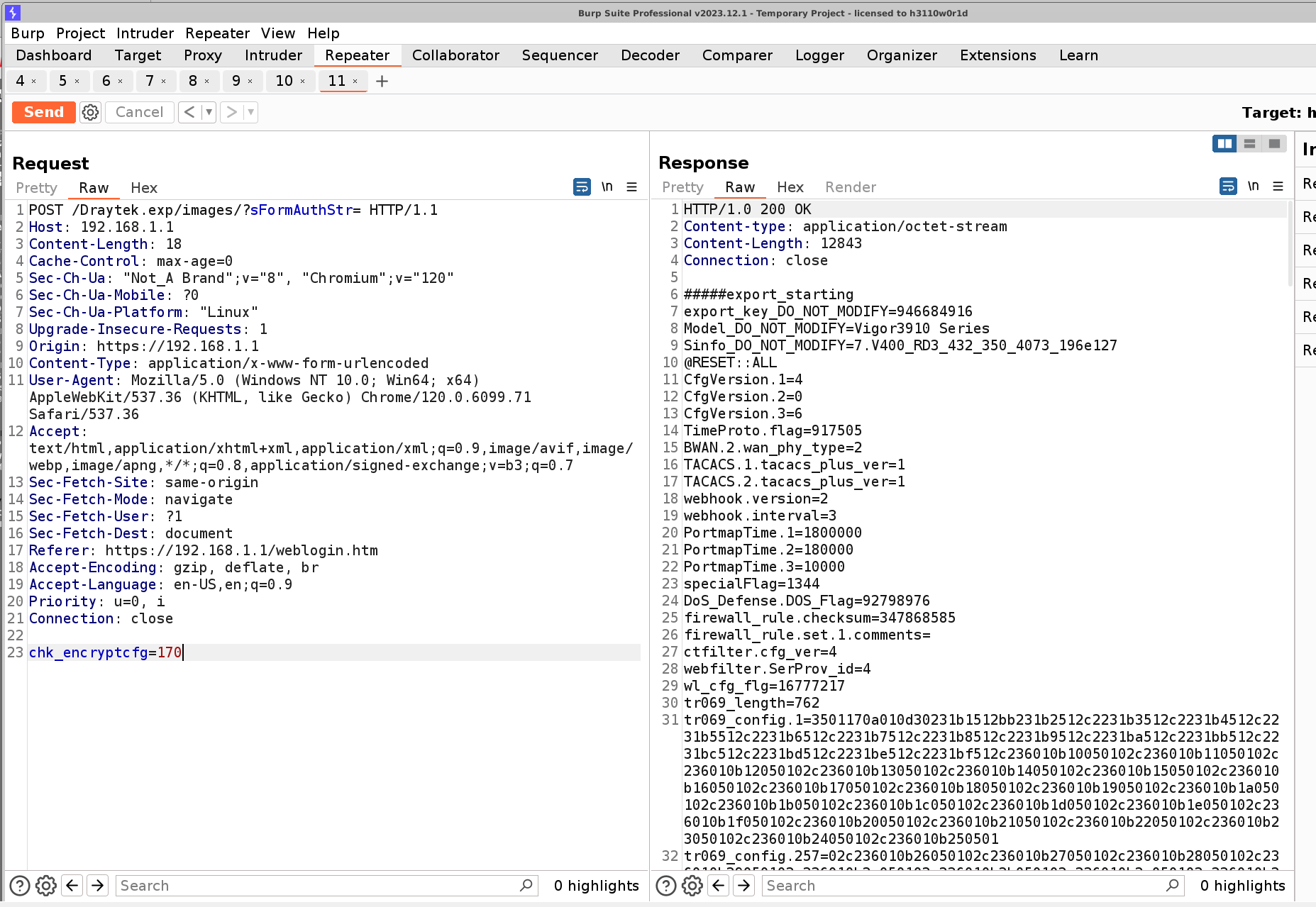 这里猜测Key为这个值原因在于Vigor有历史通用密钥,所以这里猜测一下。