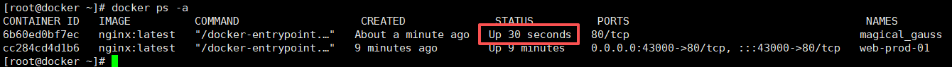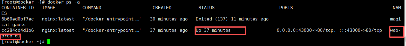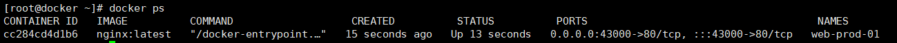 docker run -d --name web-prod-01 -p 43000:80 nginx:latest