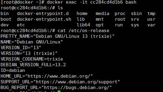 cat /etc/os-release(若镜像无该文件,可换uname -a)