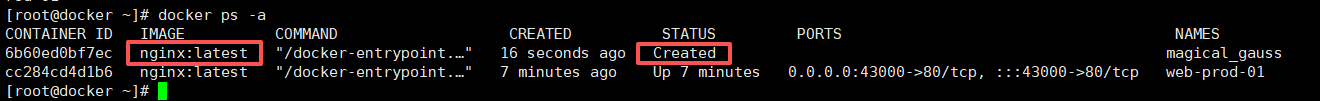 docker ps -a输出(状态为 Created)