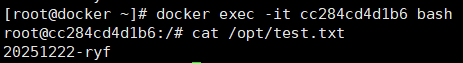 cat /opt/test.txt(用 exec 进入或直接 exec 执行)