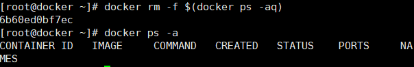 docker rm -f $(docker ps -aq) -