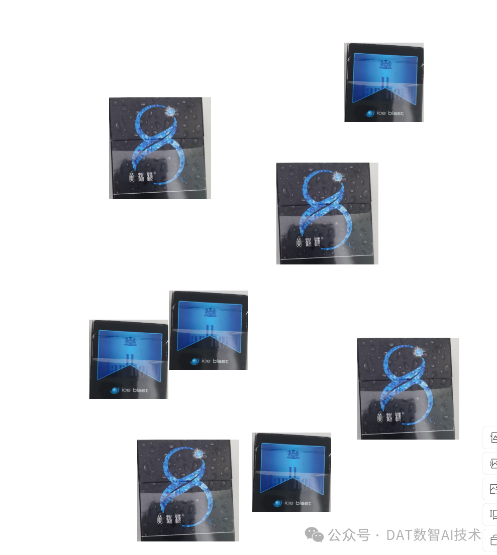 ③接着,我将从hhl.png或者wbl.png中抓取到目标盒子,然后往背景图bk.png中进行随机填充,填充后的图片中有8个随机的盒子:
