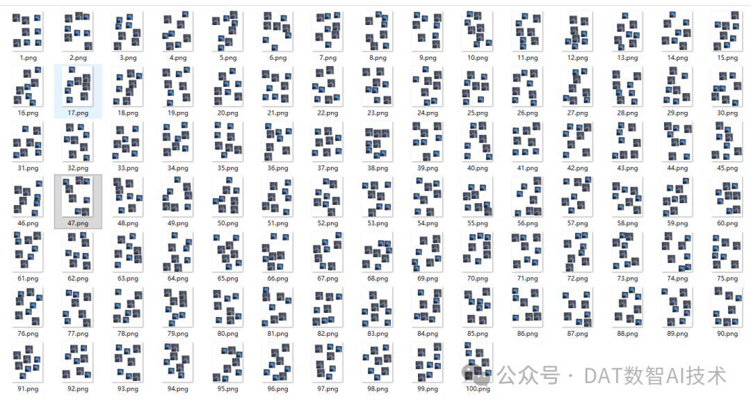 为了确保训练数据充足,我将生成100张随机填充的图片: