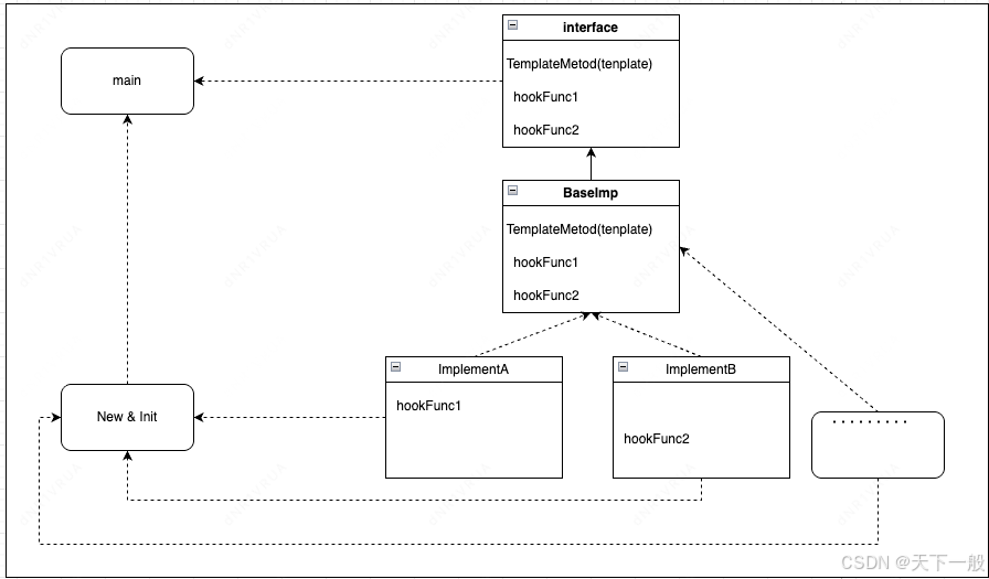 适合流程固定,有些步骤有特殊实现的情况。类图如下。优缺点不分析了,直接上实现