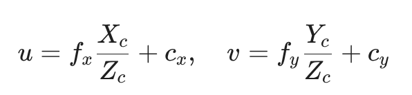 而 X c X_c Xc只与 u u u和 Z c Z_c Zc有关: u = f x X c Z c + c x u = f_x \frac{X_c}{Z_c} + c_x u=fxZcXc+cx