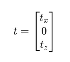 - 平移向量 t :只有 X 和 Z 分量(即相机高度不变, t y t_y ty = 0)。