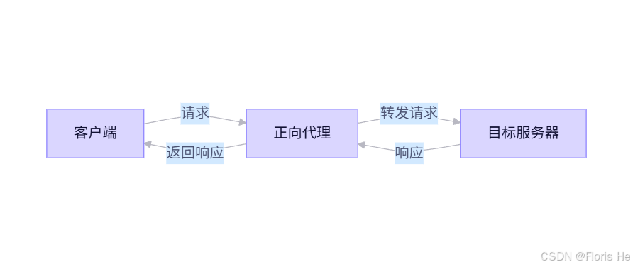 正向代理就是中间人代表客户端去向服务器发起请求,服务器看到的也是代理的 ip,不知道真实客户端是谁。这种方式一般用于突破网络限制、匿名浏览、公司内网统一出口等情况。
