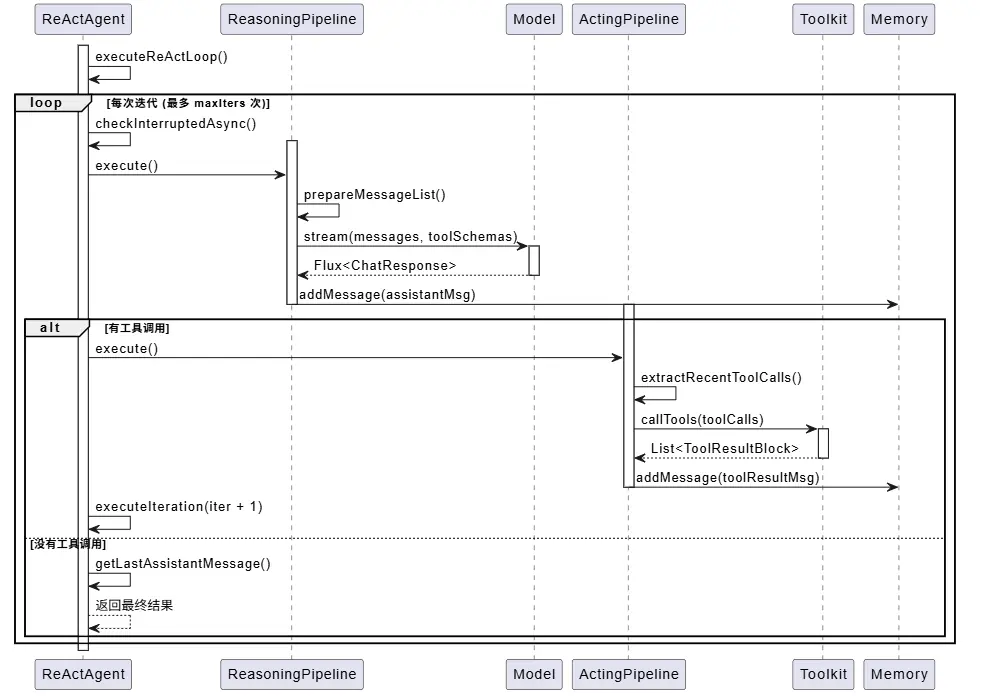 Pipeline 模式 :框架将推理和行动阶段分别封装成 ReasoningPipeline 和 ActingPipeline,每个 Pipeline 负责一个阶段的完整流程。这样做的好处是职责清晰,易于扩展和维护。