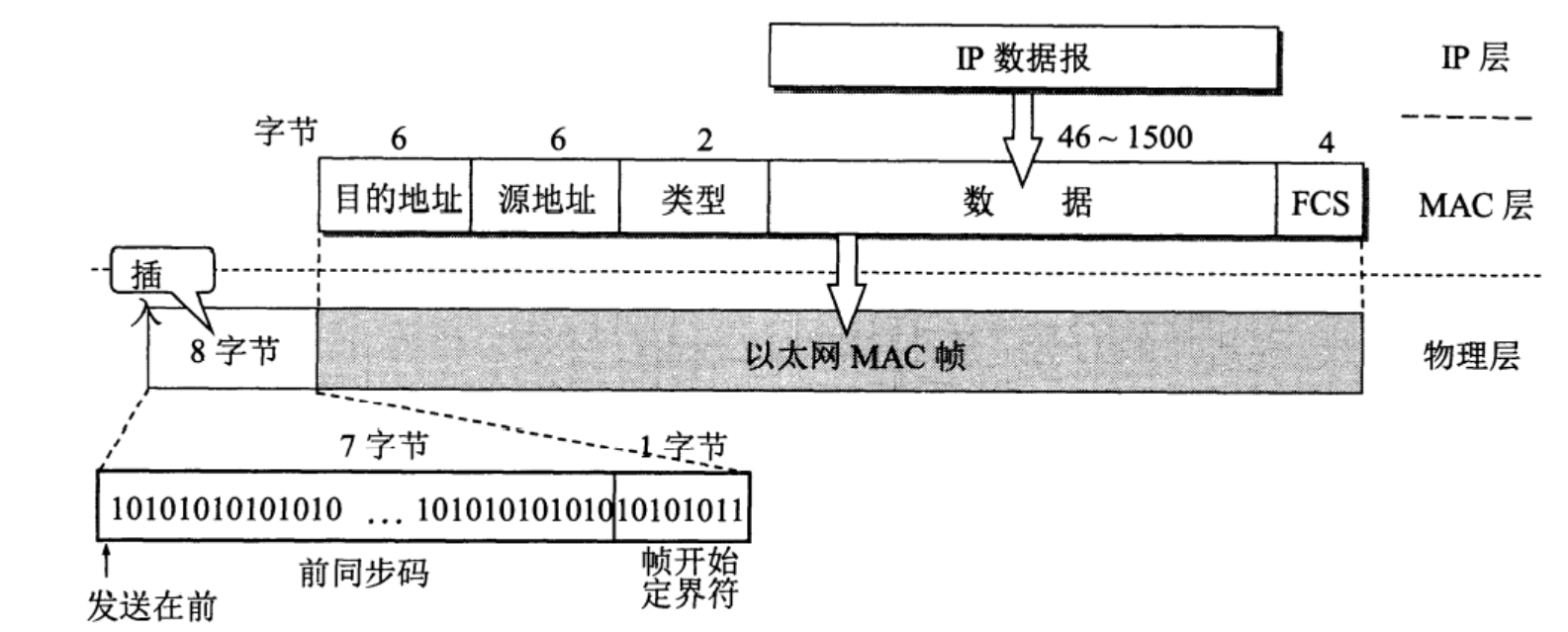 - 调用ARP 协议:获取目标 IP 对应的以太网 MAC 地址(物理网卡的硬件地址);