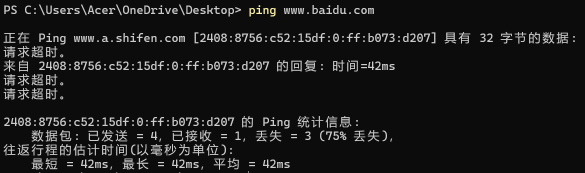 但这个是ipv6的,是往返消耗多少时间,