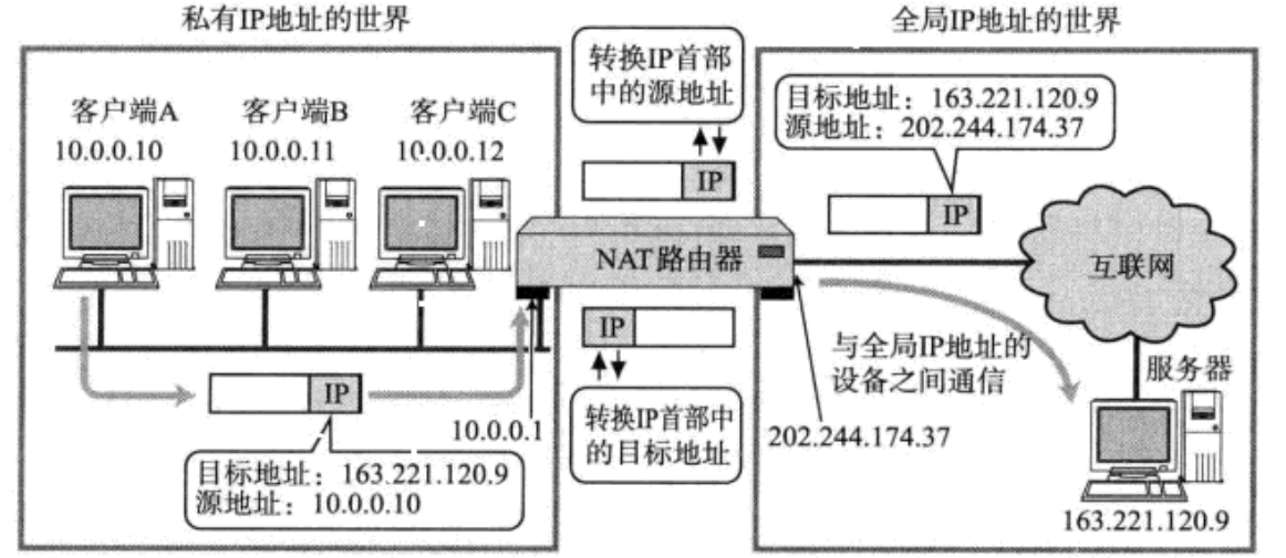NAT路由器收到外部的数据时, 又会把目标IP从202.244.174.37替换回10.0.0.10;