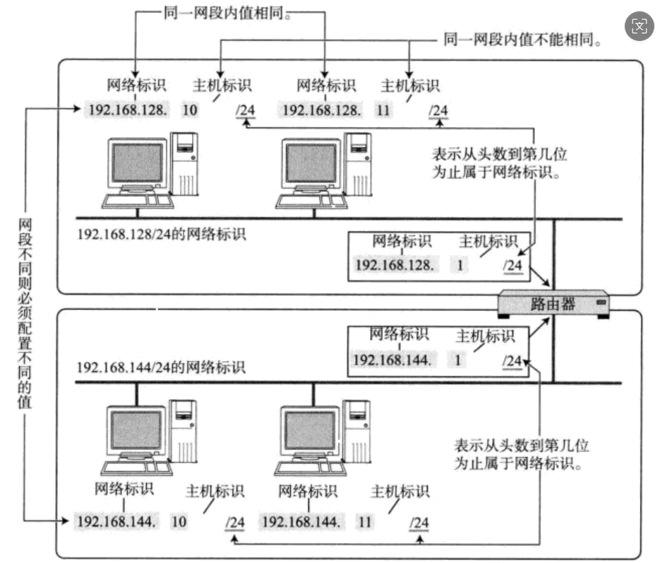 主机号: 同一网段内, 主机之间具有相同的网络号, 但是必须有不同的主机号;