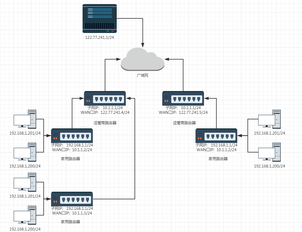 路由器往往都具备 NAT 设备的功能 , 通过 NAT 设备进行中转 , 完成子网设备和其他子网设备的通信过程 .