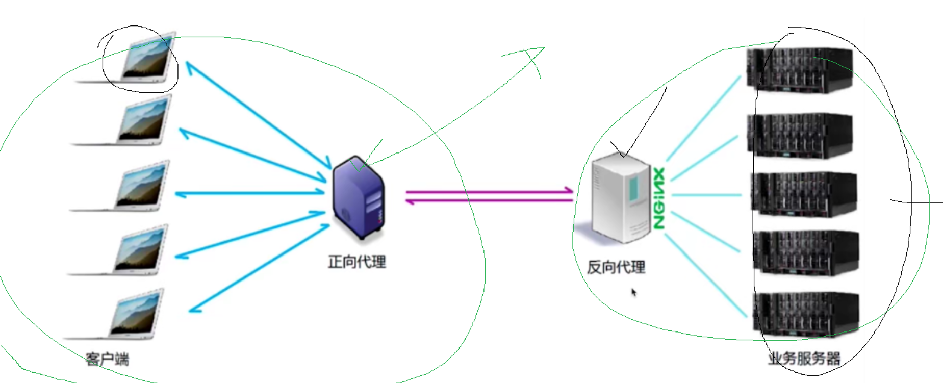 就比如表姐,她就成了卖尿不湿的人,大家都来这里买,你实际上请求的服务在你看来就是反向代理的那台服务器,实际它还要把你的请求进行转发