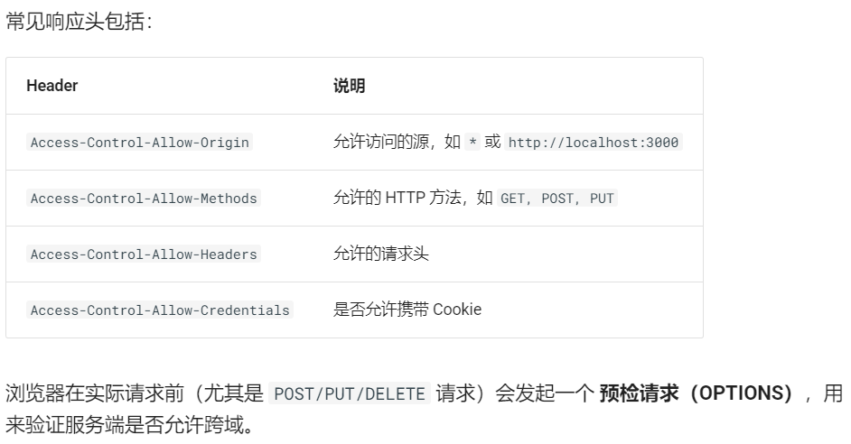 它的的核心作用就是在HTTP响应中注入CORS相关头信息,让浏览器放行跨域请求。