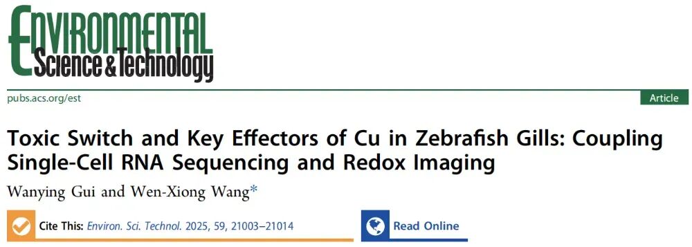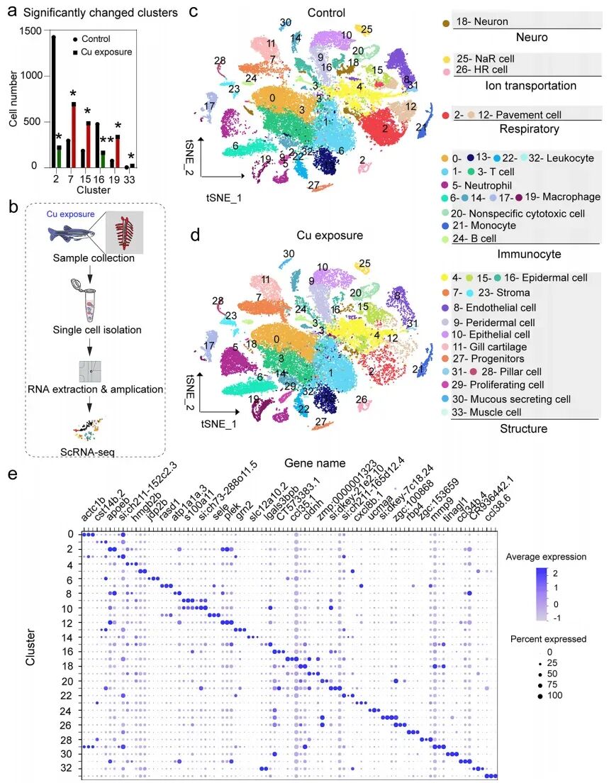 单细胞测序解析斑马鱼鳃中铜的毒性开关与关键效应因子