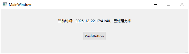 主窗口按钮点击,将当前时间字符串交给JOBPROJ.timeStr_job_in这个信号去发射,JOBPROJ.timeStr_job_in信号是业务处理类(JOB.JobProj)中的一个信号,作用是接收输入的字符串,并连接业务处理槽函数对字符串进行处理,然后将处理结果交给timeStr_job_out信号去发射,而timeStr_job_out信号连接的槽函数,是将主窗口中的标签文字更新,这样就完成了一个信号传递过程。为什么不将业务处理槽函数放在主窗口的.py文件中呢?是因为这样做可以做到画面和功能的彻底解耦、前后端的彻底分离,方便项目的编程、修改和移植。显而易见的是:如果将本例按钮点击传递的信号换成一个图片文件,业务处理槽函数换成YOLO的预测函数,那么槽函数的返回结果就是YOLO的预测结果,将其作为信号发射回主画面并显示,这就是大多数YOLO预测项目的信号流程了。