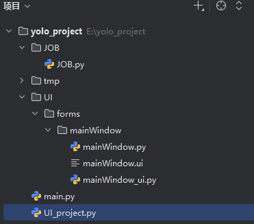 - 在项目根目录下新建文件夹:UI、JOB、tmp,分别存放界面文件、业务文件和临时文件。