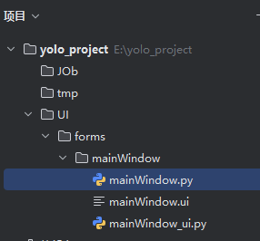1、forms\mainWindow目录,是自己建的主窗口界面文件所在的目录,目录下的mainWindow.ui是自建的与目录同名的.ui文件。这个mainWindow可以改为自己需要的任何其他名称,比如masterWindow。