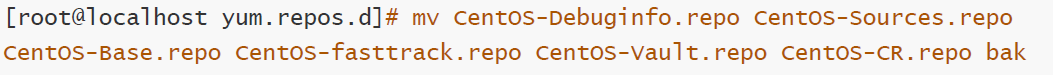 mv CentOS-Debuginfo.repo CentOS-Sources.repo CentOS-Base.repo CentOS-fasttrack.repo CentOS-Vault.repo CentOS-CR.repo bak
