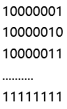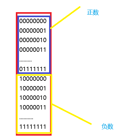 在讲这个前,我们要先知道char类型存的数据范围是多少,首先我们先来看八位二进制有几种存放形式,如下图