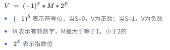 根据国际标准IEEE754,任意一个二进制浮点数V可以表示成下面的形式,如下图