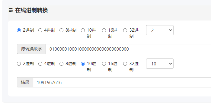 那么这个32位的二进制我们转成十进制看下是多少,如下图