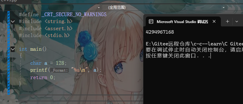 所以有符号类型的char的范围就是-128到127,那么接下来我们来看上面那个代码