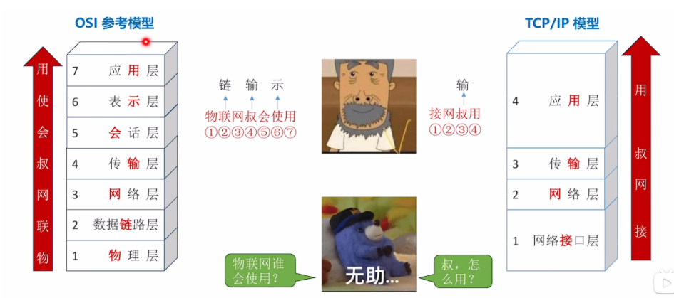 另外,考试还会考察OSI模型和TCP/IP模型 从低层到高层每一层的名字。这里给大家提供一个记忆口诀:
