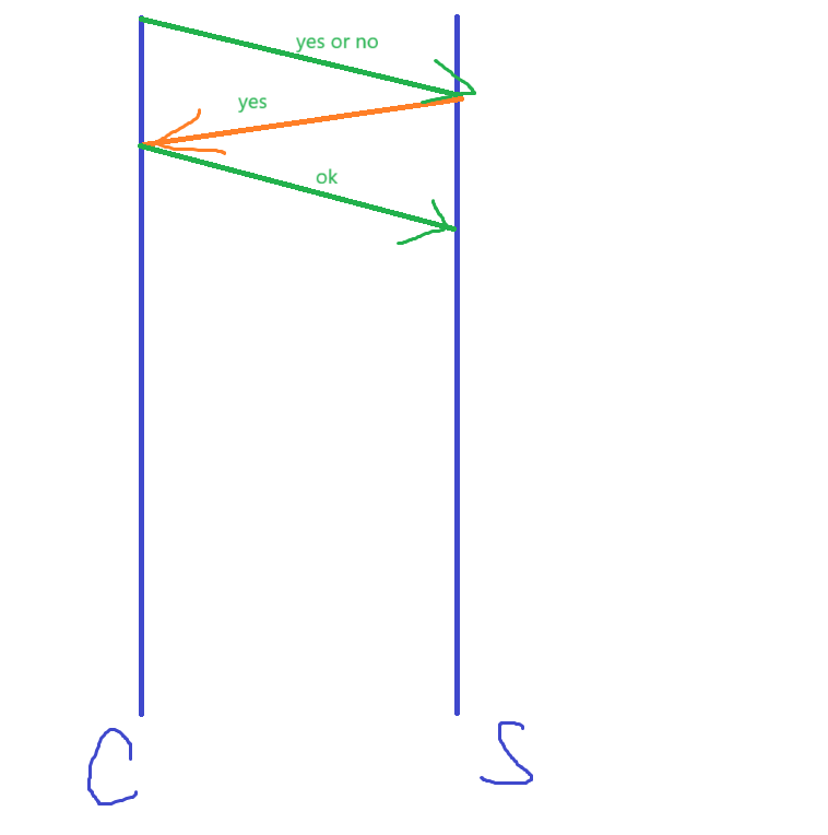 - 功能:①可靠传输,是指数据传输前要先建立TCP连接。假设客户机C想要从服务器S上下载一个图片,那么在下载图片前呢,必须经过三步。第一步,C向S发送一个建立连接请求。第二步,S收到这个请求后,告诉C,它同意了。第三步,C回复给S一个ok,表示我已经明白你的态度了(C比较礼貌)。
