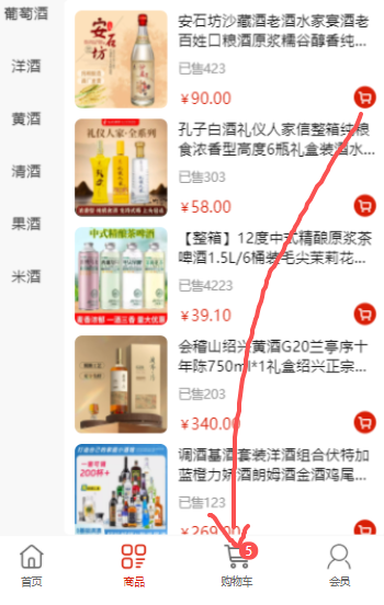 图片实例点击列表中的购物车按钮 红点飞到下方的购物车组件中