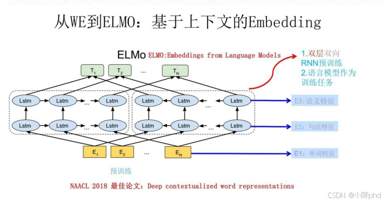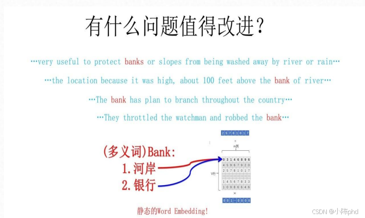 左边例子很典型:"bank"既可以是"河岸",也可以是"银行"------Word2Vec分不清,但ELMo能。