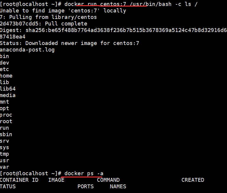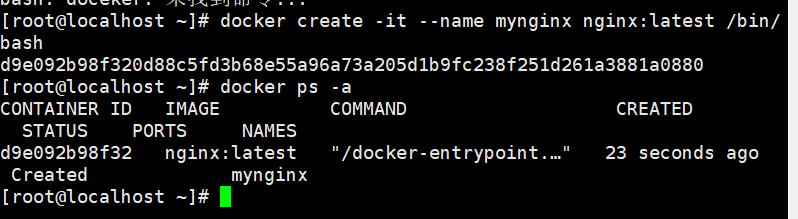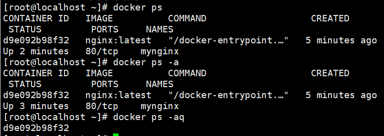 docker ps -a #会发现创建了一个新容器并启动执行一条 shell 命令,之后就停止了