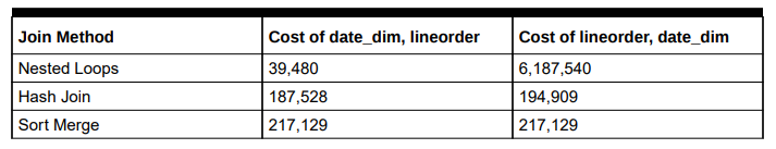 Table 9-2 Sample Costs for Join of date_dim and lineorder Tables