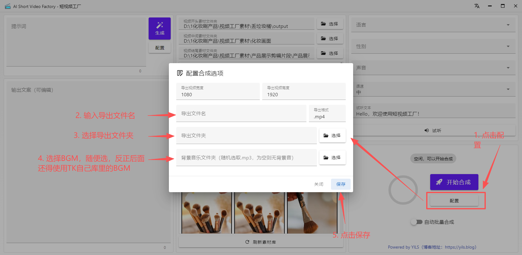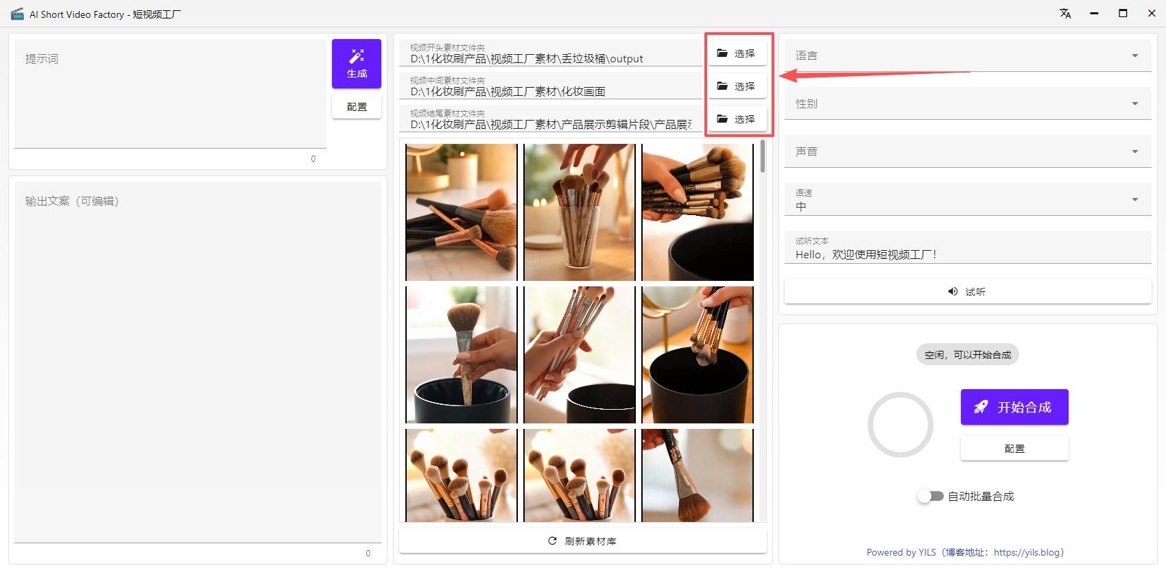 4. 配置前镜、中镜、后镜的文件夹,例如我这里的视频模板是: