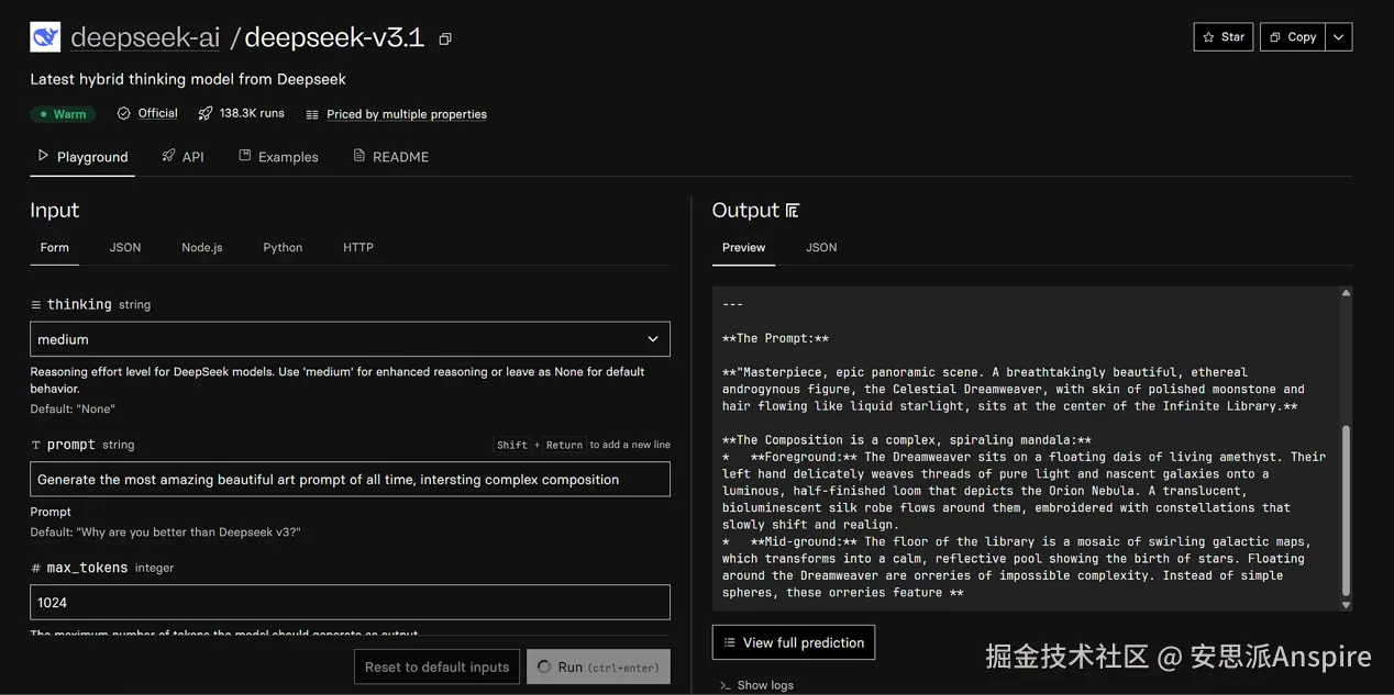 首先,假设我想用语言模型为AI图像生成器生成一个提示词。在研究了所有顶级模型后,我选择了Deepseek: