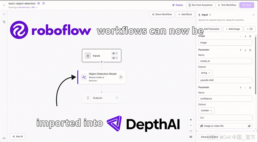 如果你想直接在DepthAI设备上运行Roboflow模型并立即看到结果,这种新的集成已经变得非常简单。没有复杂的设置**,** 没有繁重的编码 , 只需插入您的设备,连接工作流程,即可看到一切变得栩栩如生。