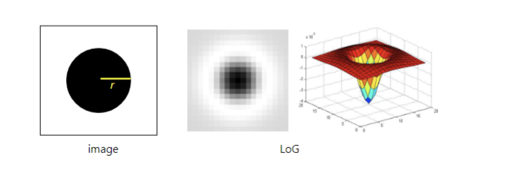 - 作用: LoG 算子可以作为团块(Blob)检测器 。当 LoG 的零交叉点与圆形的边缘重合时,响应达到最大值。