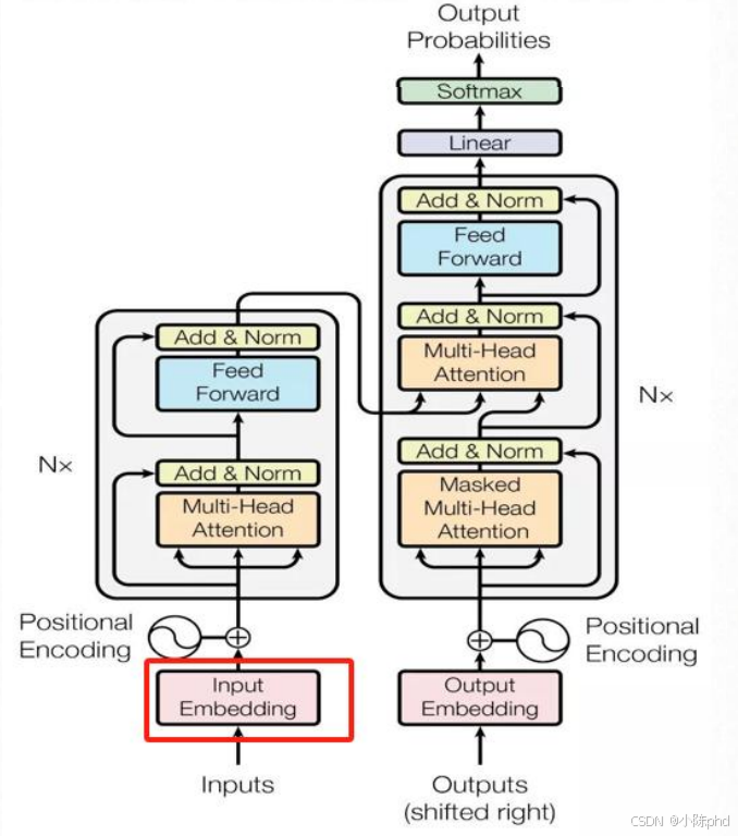 √d_model,目的是平衡词向量与后续位置编码的数值量级,避免某一部分特征主导计算; - 输入输出 :