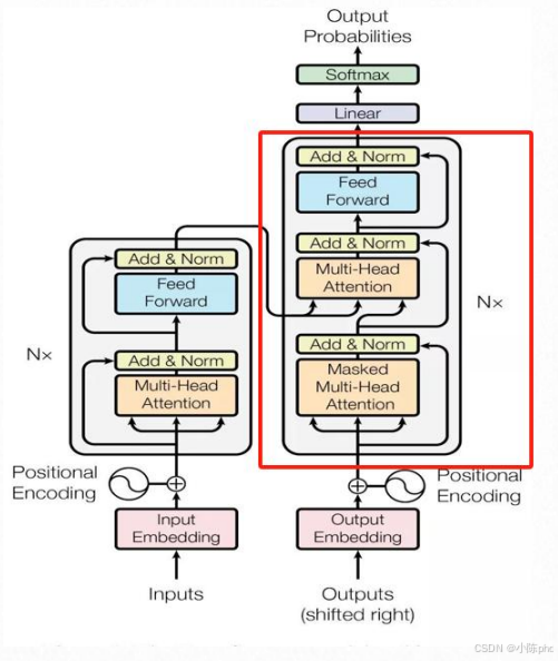 从左侧架构图可见,Decoder是Transformer的右侧模块:
