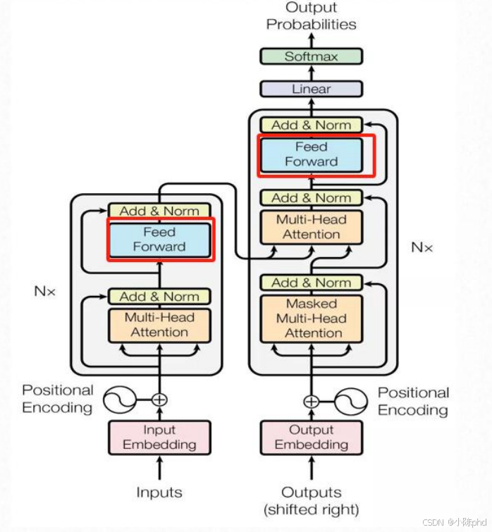 对交叉注意力的输出做非线性变换,提炼生成特征。 - Decoder的前向传播 :