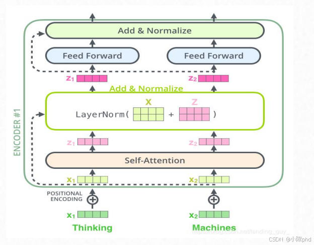 实际使用中,Input Embedding的输出会与"位置编码(Positional Encoding)"的输出相加,得到最终的输入向量(既包含单词语义,又包含位置信息),再送入编码器。