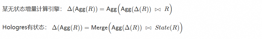 公式大体是比较相似的,主要区别是Hologres的有状态方案持久化存储了历史数据的聚合结果,因此有以下优势: