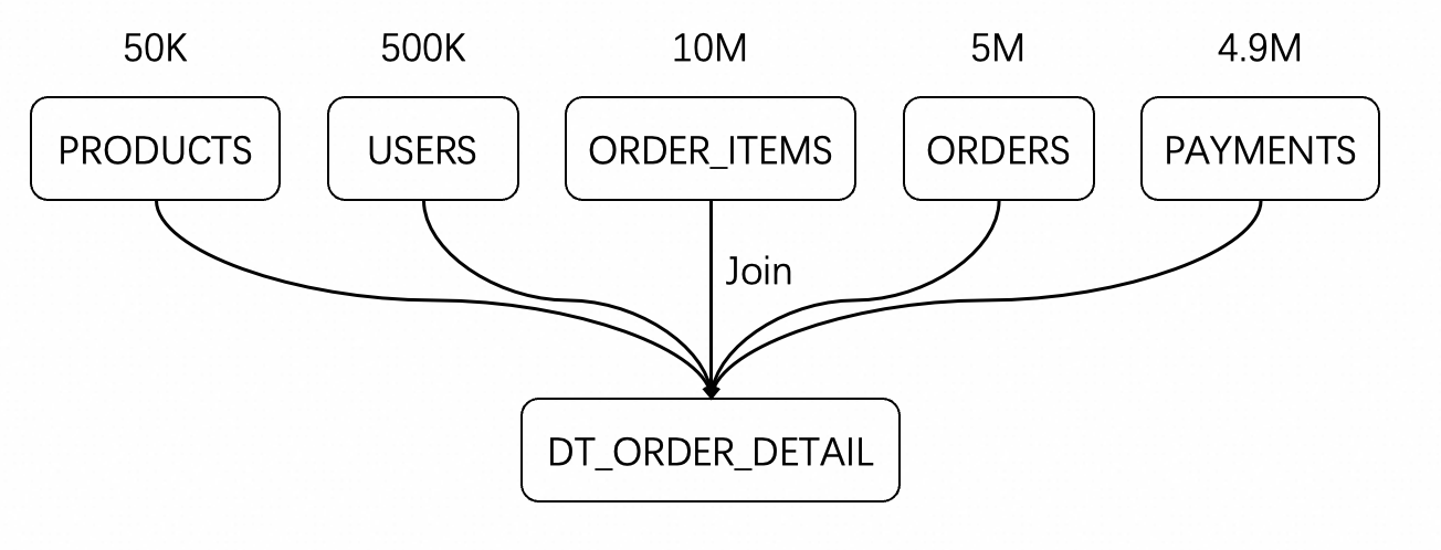 场景 3:五表复杂 Join(订单 + 用户 + 商品 + 支付等)
